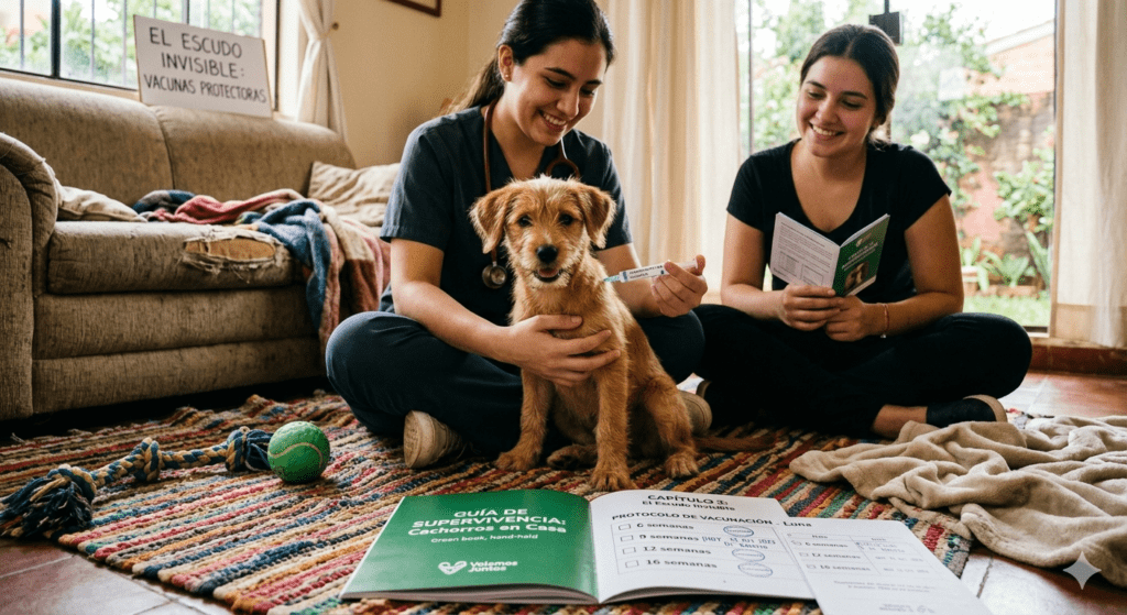 Pablo sonrió, pero con esa mirada seria que pone cuando enseña en la Universidad. Alzó a Tobi, le revisó las encías y les dijo: —“El piso se ve limpio para tus ojos, pero para el sistema inmune de Tobi, esto es un campo minado. Hasta que no terminemos su ‘escuela de defensa’, este cachorro no toca vereda, ni pasto, ni piso de veterinaria”.